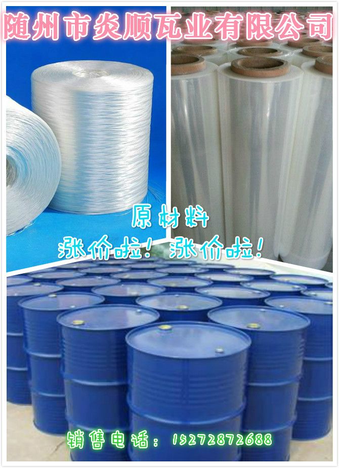 玻璃鋼行業(yè)最新消息:受苯乙烯(11200)、苯酐(7500)、順酐(7600)等樹脂原材料大漲影響,防腐瓦、采光瓦、衛(wèi)浴用樹脂已較年初上漲近2100元/噸,玻纖較年初上漲也近1000元/噸,這給利潤較低的采光瓦行業(yè)帶來了較大的打擊,另外連衛(wèi)浴用的氫氧化鋁粉也加入漲價行列,所以此時此刻的市場更需行業(yè)自律,理性競爭,提升產(chǎn)品質(zhì)量,創(chuàng)新產(chǎn)品才能健康的發(fā)展市場。以上消息僅供參考!